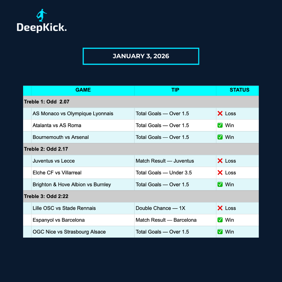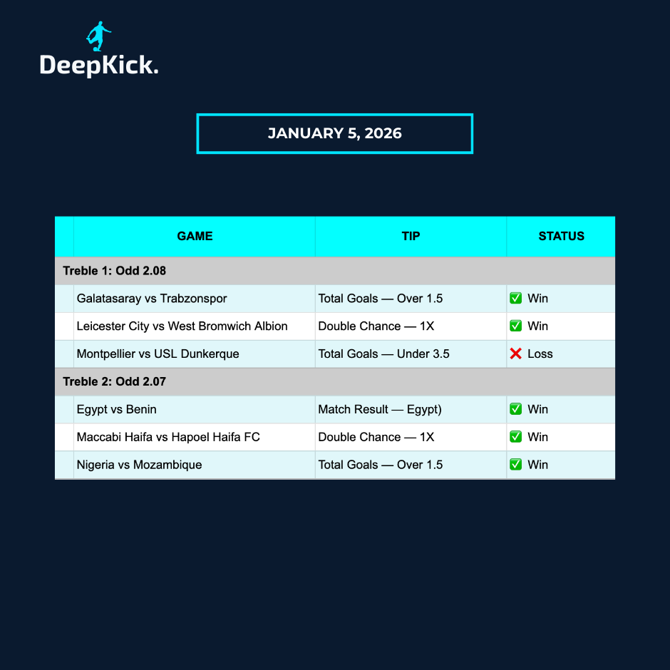DeepKick provides complete visibility into real performance. Our daily results and fully documented match logs ensure you always know exactly how our system performs — no inflated claims, no hidden outcomes.