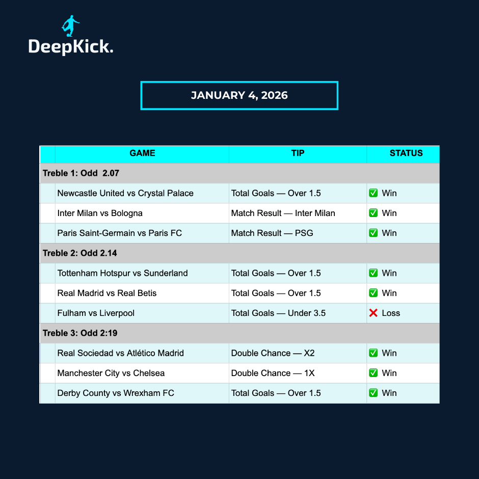 DeepKick uses a multi-layered analytics stack: a machine-learning model trained on thousands of matches, real-time inputs (form, injuries, weather, odds movement), pattern-recognition algorithms, and a human verification layer. This hybrid approach balances precision with contextual judgement to deliver reliable, high-confidence predictions.